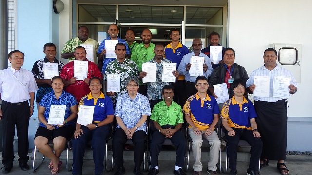 Two technical experts from WMO/RIC Tsukuba visited the Fiji Meteorological Service (FMS) from 20 November to 3 December 2016 to attend the Japan International Cooperation Agency (JICA) third country training program as supervisors. Thirteen trainees from eleven WMO Members in Oceania (Federated States of Micronesia, Kiribati, Nauru, Niue, Papua New Guinea, Samoa, the Solomon Islands, Tonga, Tuvalu, Vanuatu and Fiji) participated in the program as part of the JICA Project for Reinforcing the Meteorological Training Functions of FMS.