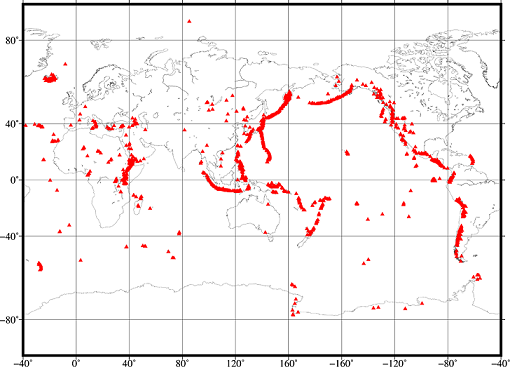 スミソニアン自然史博物館(アメリカ)のGlobal Volcanism Programによる火山データをもとに、気象庁作成