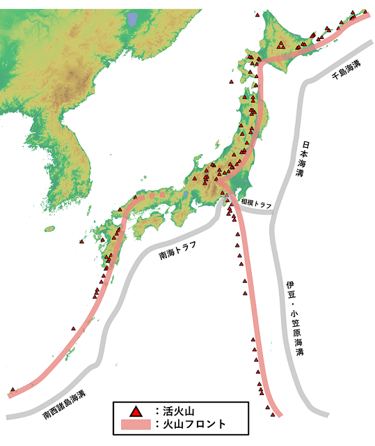 (注)火山は過去概ね1万年間に活動のあったもの。