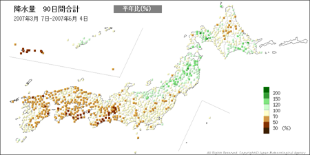 表示例 (降水量 90日間合計値の平年比)