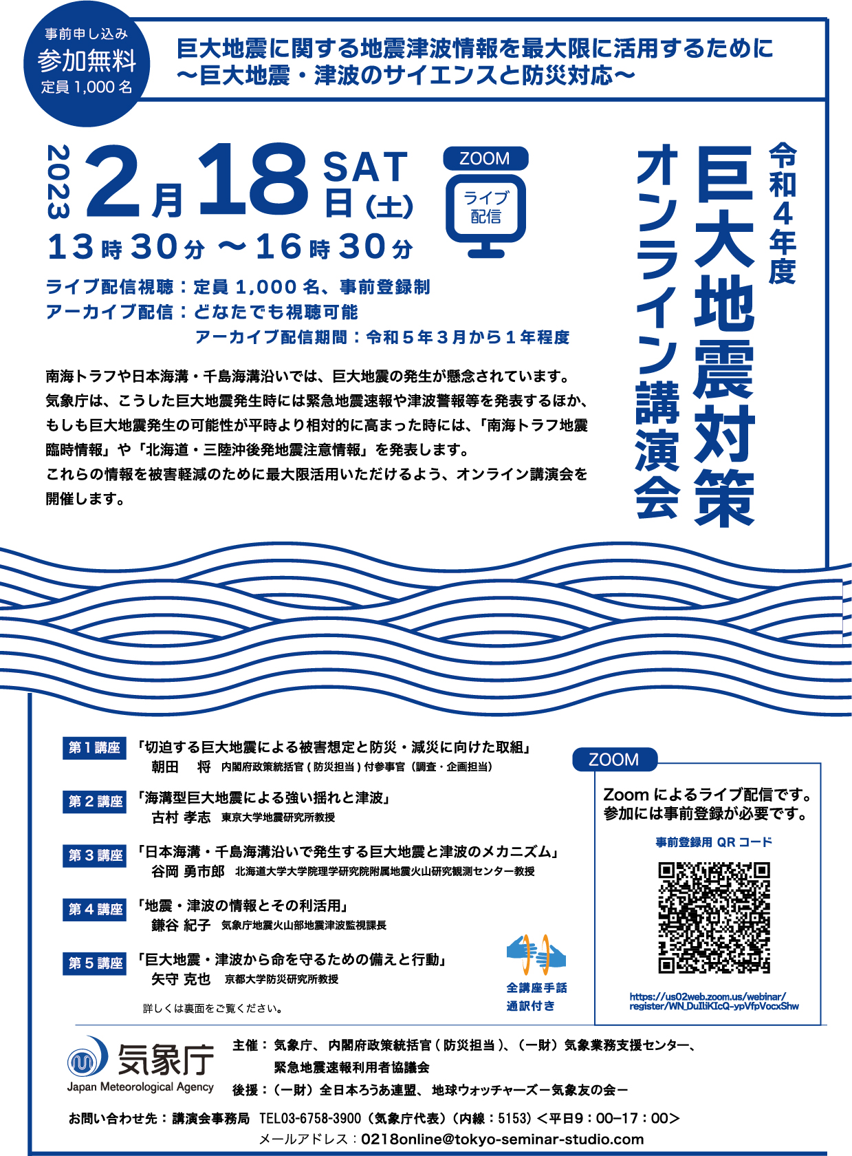 ~巨大地震に関する地震津波情報を最大限に活用するため、オンライン講演会を開催~