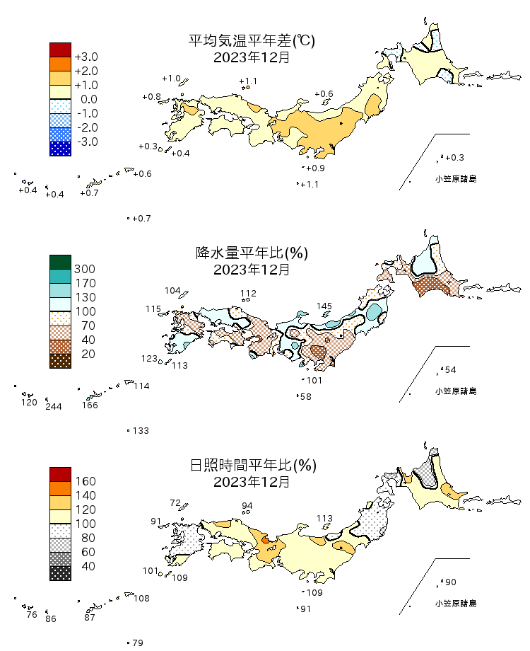 2023年(令和5年)12月の天候の特徴は以下のとおりです。