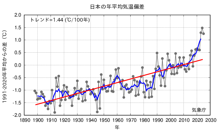 - (日本の年平均気温)気候情報課 高橋(内線4542)