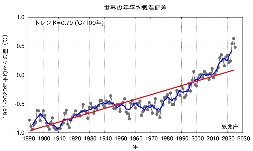 ※世界の年平均気温偏差の2024年の確定値に誤りがあったため、気象庁ホームページに掲載している図表・データを修正しました(令和7年12月24日)。